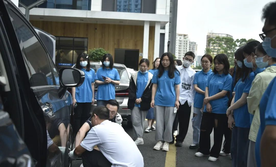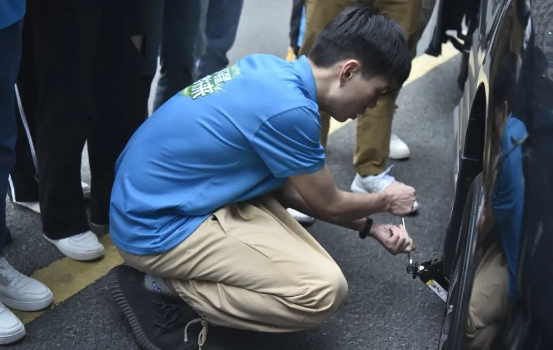 參觀完公司辦公環(huán)境后,我們來(lái)到了現(xiàn)場(chǎng)拆車活動(dòng)。資深產(chǎn)品專家Davin和James先給大家來(lái)個(gè)“前菜”-現(xiàn)場(chǎng)拆輪胎,同學(xué)們看了后躍躍欲試。