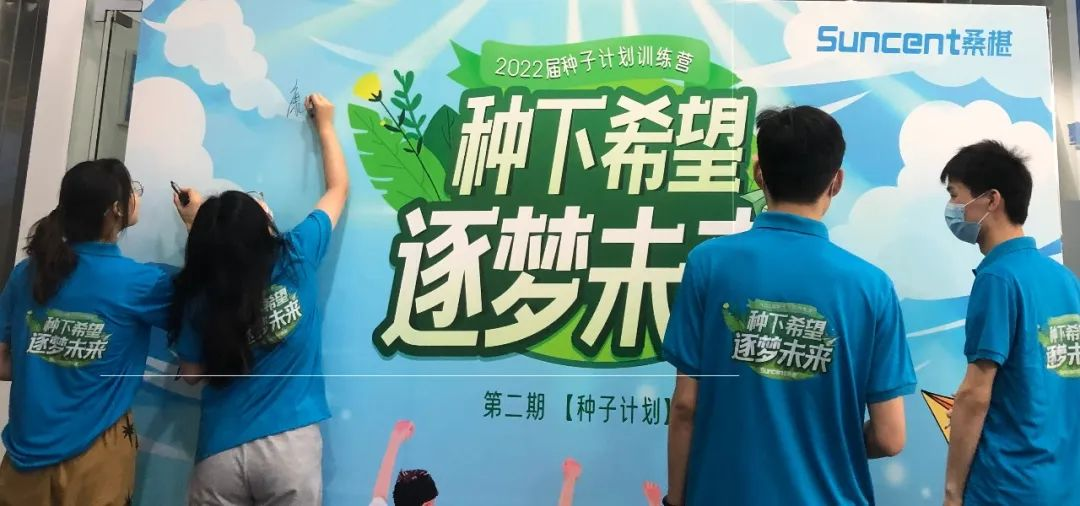 他們?cè)诤灥綁Ψ浅t灑地簽下自己的名字,在簽到墻上留下“我是種子計(jì)劃訓(xùn)練營(yíng)”一員的印記~