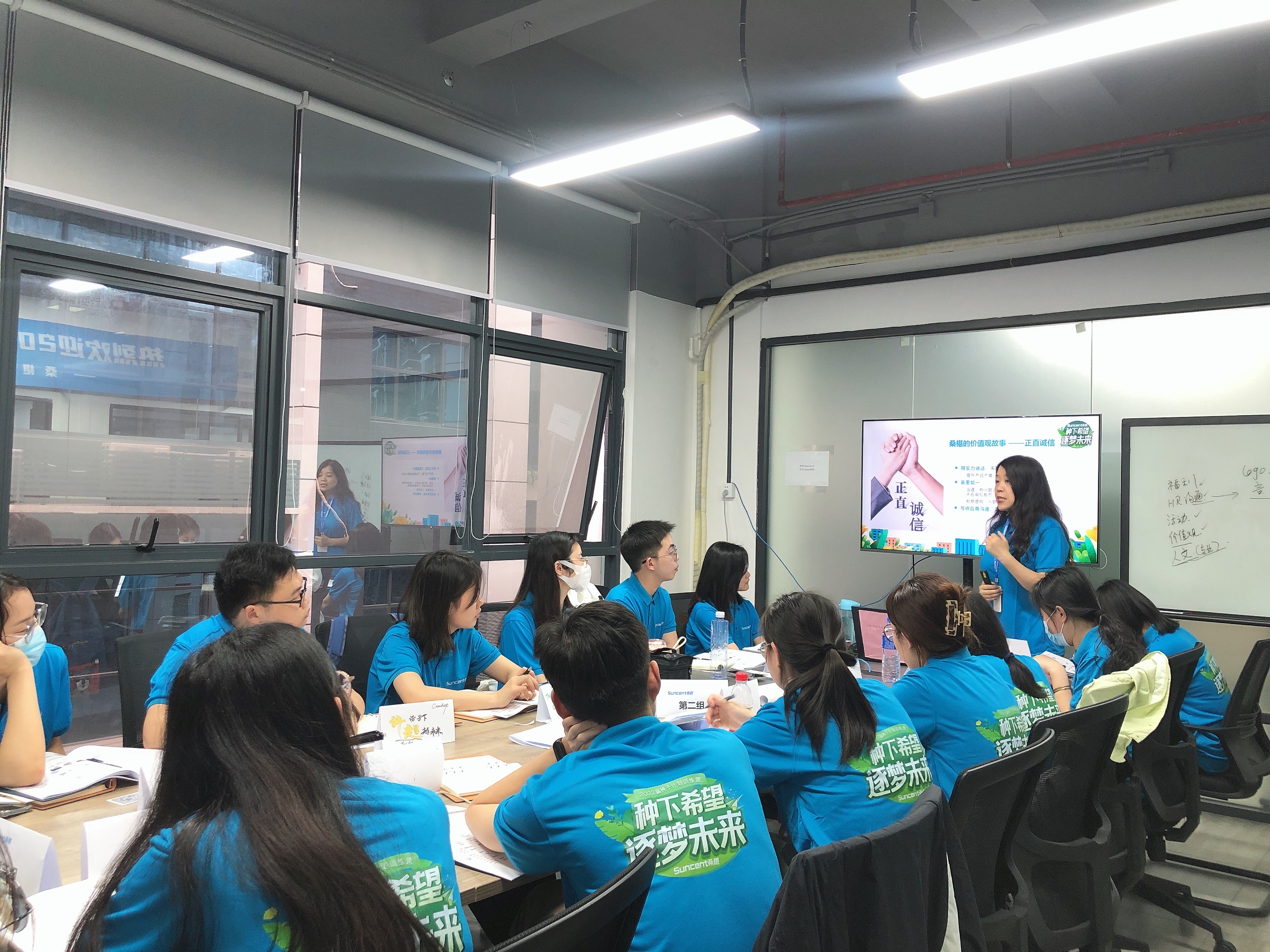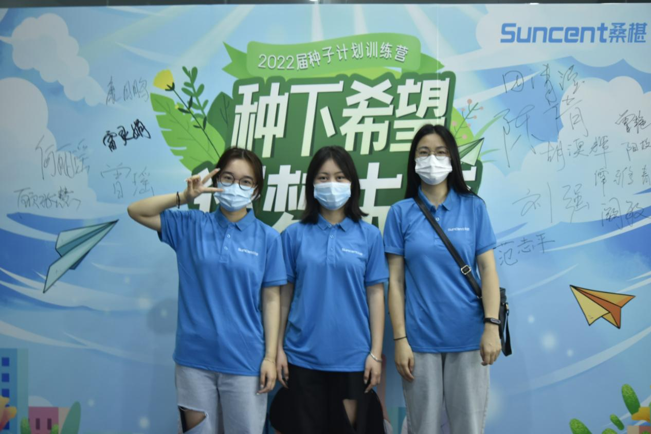 朝氣蓬勃的同學(xué)們?cè)缭鐏?lái)到公司前臺(tái)簽到,穿上專屬于種子計(jì)劃的文化衫,搖身一變桑椹人~