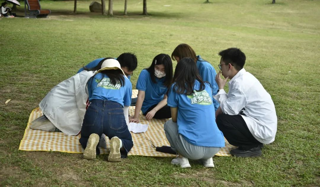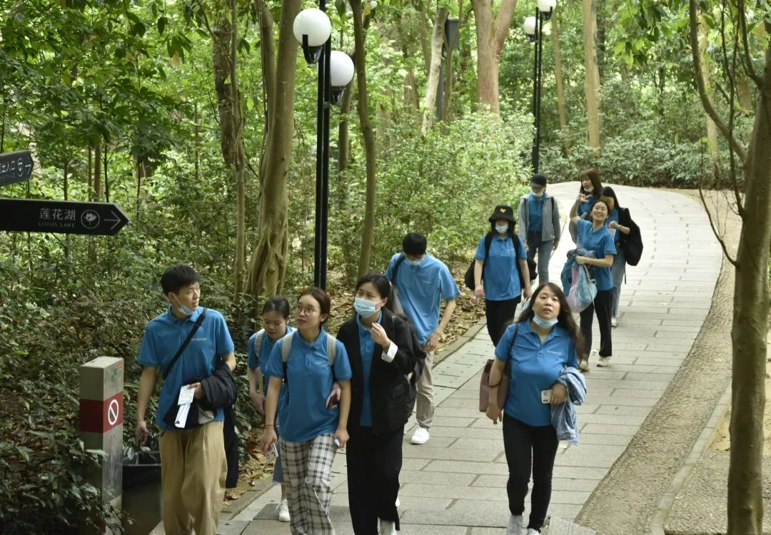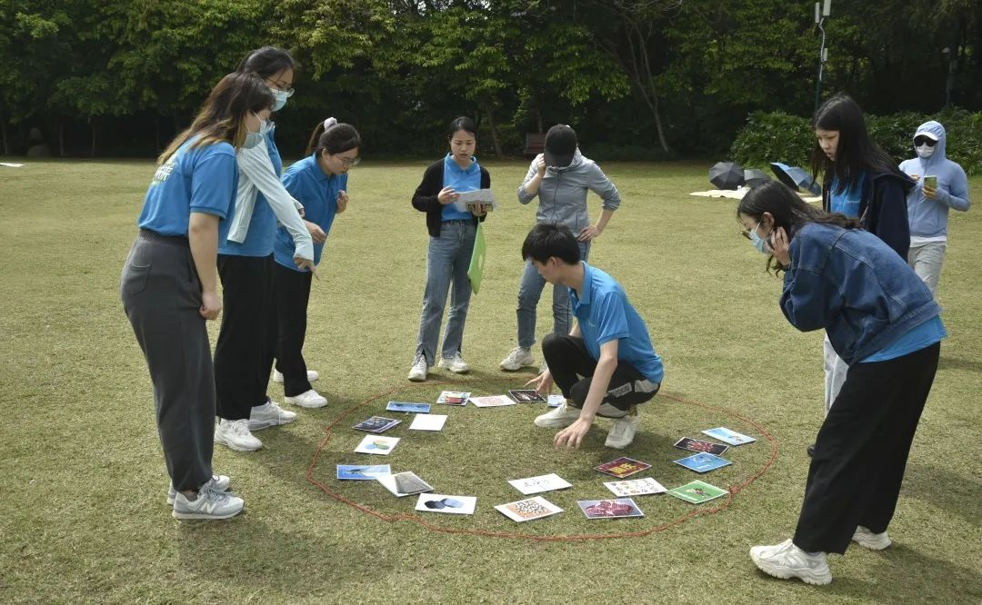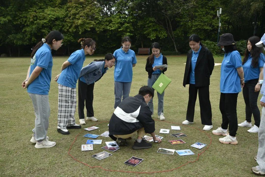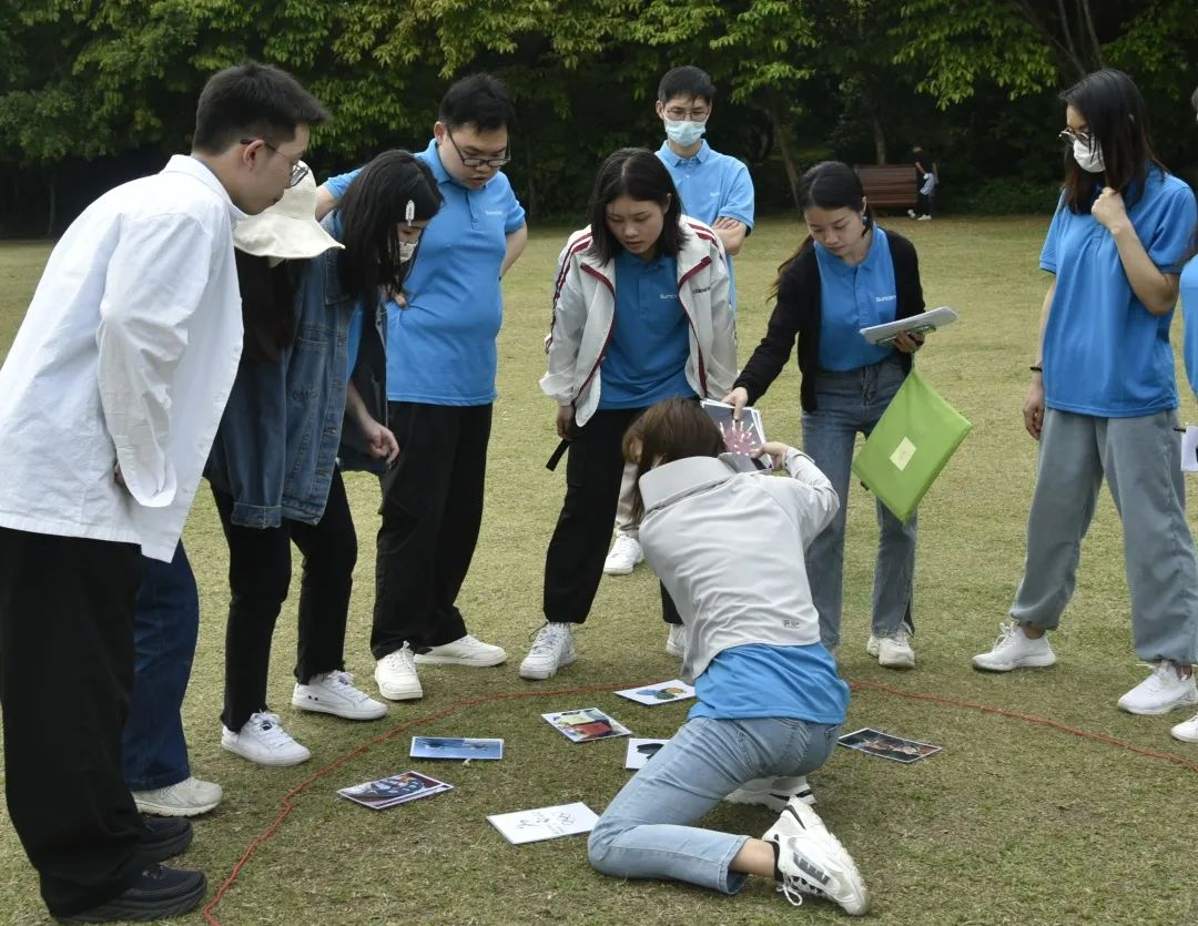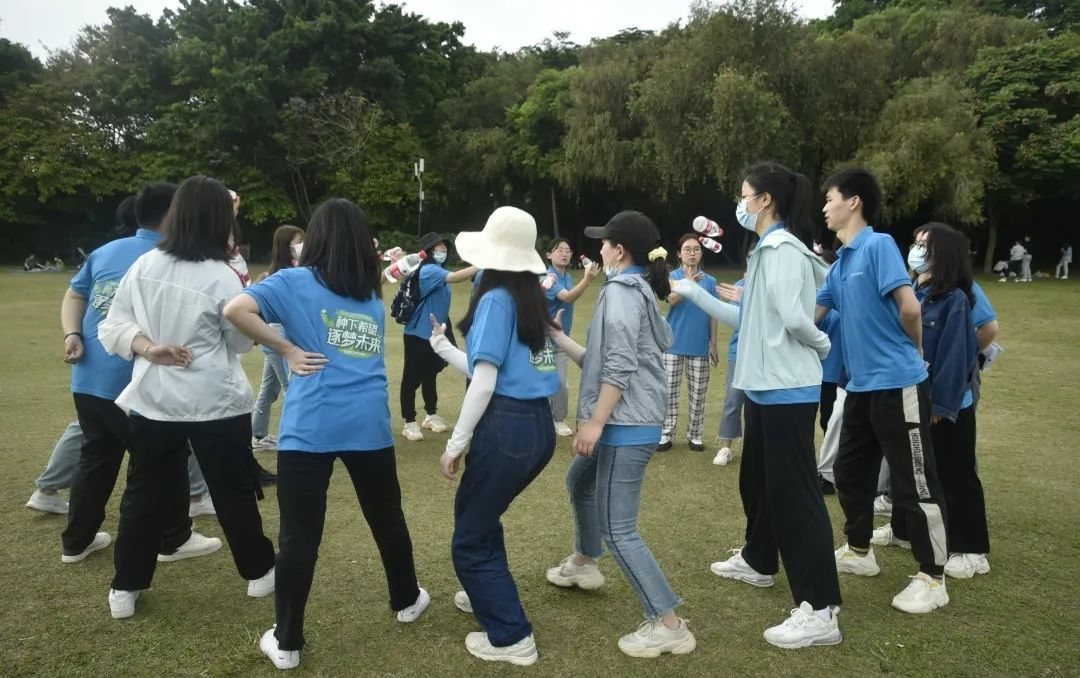 抵達(dá)蓮花山公園后,在班主任Angela解說(shuō)團(tuán)隊(duì)拓展項(xiàng)目規(guī)則和注意事項(xiàng)后,便開始了第一個(gè)項(xiàng)目:登山頂奪分環(huán)節(jié)。